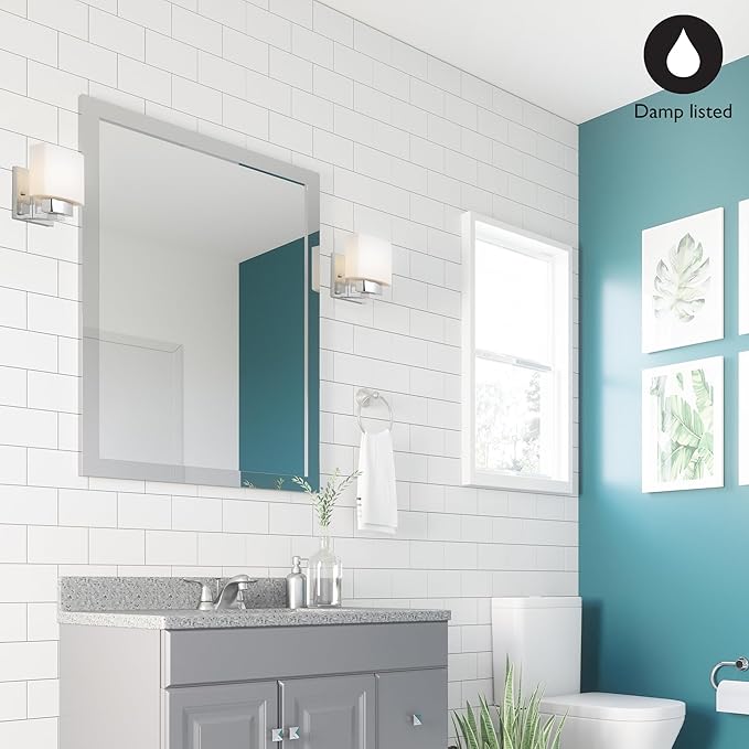 Design House Dove Creek Wall Light Sconce – Dimmable with Frosted Glass for Hallway, Bathroom, Foyer, Bedroom – Polished Chrome, 589663