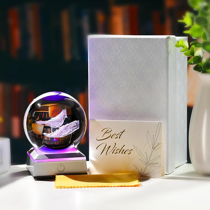 - K9 Crystal Ball: Each ball is made of K9 crystal. The 3D cardinal crystal ball was engraved inside balls by an advanced etching technology, which is clear, lifelike, and vivid. Matched with a multicolor LED light base.