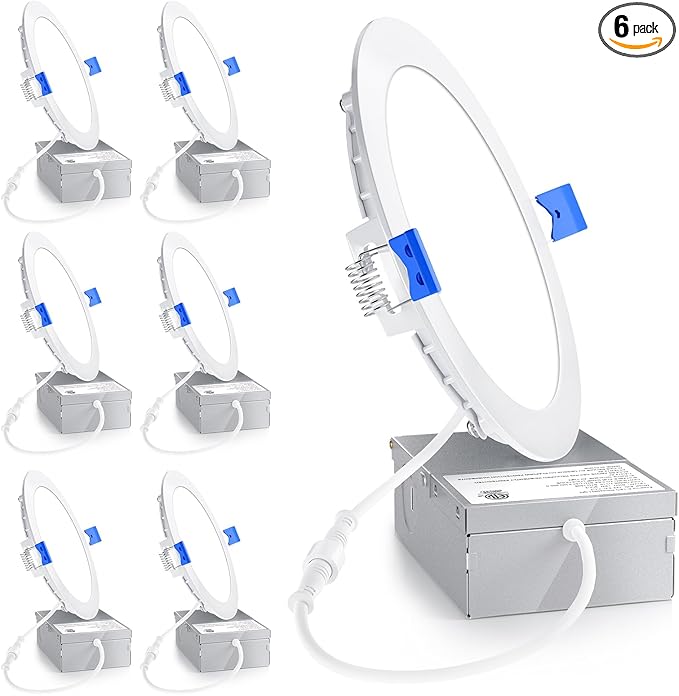- 5CCT in ONE - Choose from 2700K, 3000K, 3500K, 4000K, 5000K with a simple click on the side of the J-box, Ensenior's canless recessed light 6 inch provides perfect lighting for your bedroom, living room, kitchen, bathroom, home office and other rooms.