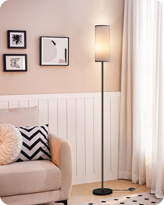 - Soft Ambient light: The linen lampshade gives off a warm glow, diffuses bright bulbs nicely, making any room feel inviting and calming. The sleek black pole and gray lampshade add cozy ambiance to your couch area or dark corners. Whether in the living room, bedroom, or office, this tall reading lamp for office can easily fit into any decor and enhances the ambiance. Find the different color lamp that matches your room's color scheme