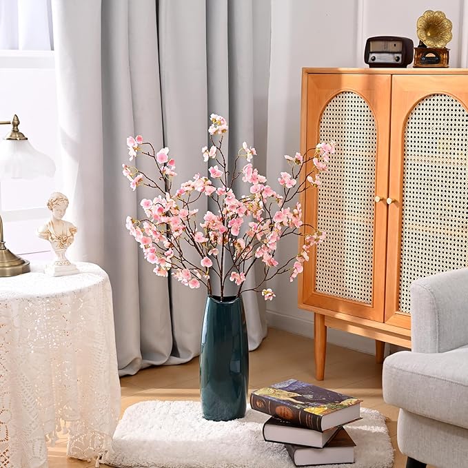 - ๐ธPREMIUM MATERIAL: Faux cherry blossom branches are handmade from silk, with full colors and rich layers. Silk cherry blossom petals are thin and transparent, very sturdy. We follow the natural beauty of flowers, with each petal naturally curling, adding a sense of vitality to your home.