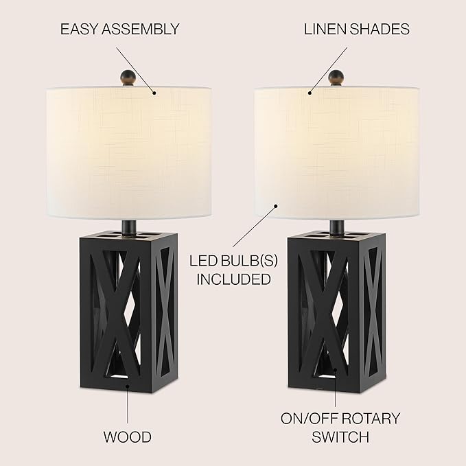 JONATHAN Y JYL1062C-SET2 Stewart 21.5" Wood LED Table Lamp Farmhouse, French Country, Rustic, Bohemian, Bedroom, Living Room, Office, College, Bookcase, Black (Set of 2)