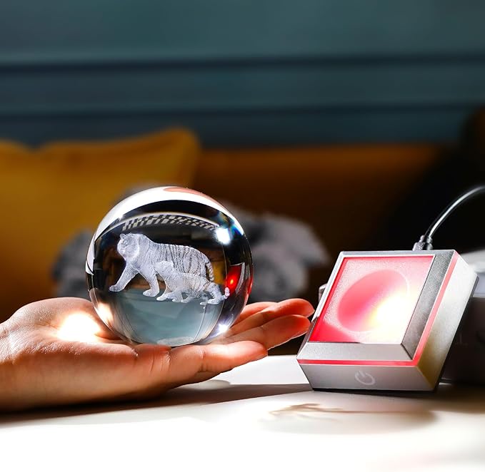 - Exquisite Crafts: Each ball is made of K9 crystal without any impurities. The lifelike 3D Tiger Mother and Kid is engraved inside the 8 cm ball by advanced laser engraving technology. It will not fade or rub off, adding splendor to your life at any time