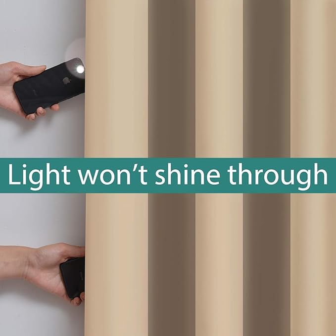 Yakamok Beige 100% Blackout Curtains, Thermal Insulated Total Blackout Drapes for Bedroom, Heat Blocking Window Curtains for Living Room(62Wx84L, 2 Panels)