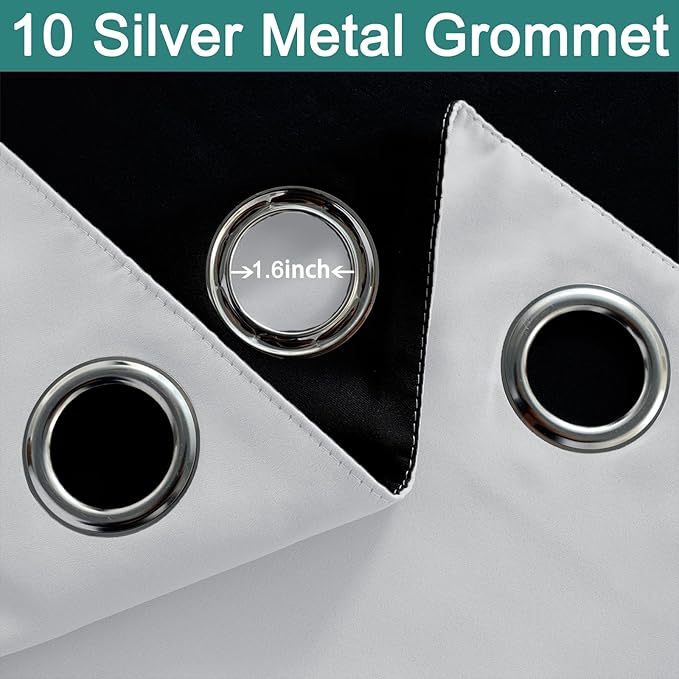 - PACKAGE MADE:2 panels per package. Each Lined Curtain measures 70" wide x 84" long. 10 Silvery Grommets per panel. This silvery grommet (1.6 inch inner diameter) fits many rods. Easy to hang and smooth to slide. The simple design gives people a sense of ease.