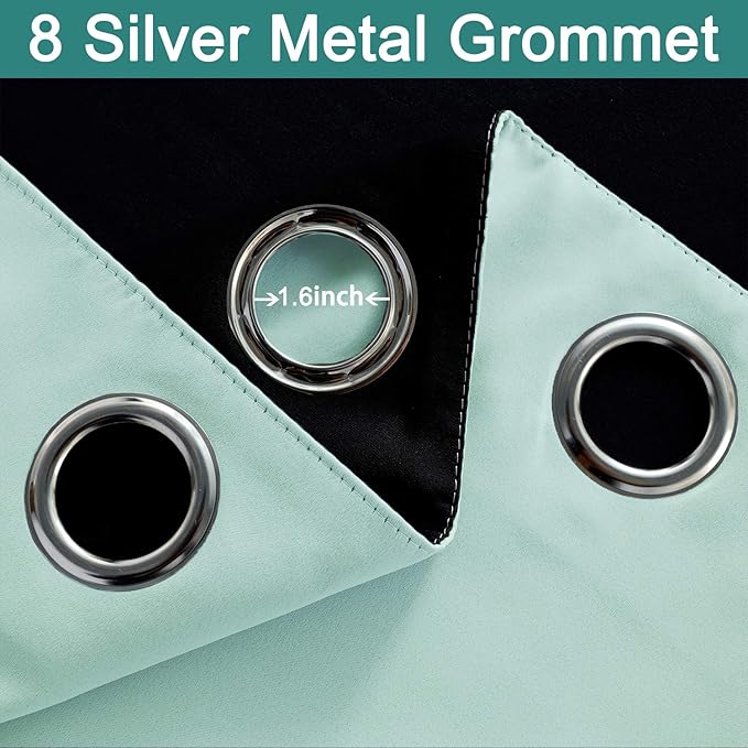 - PACKAGE MADE:2 panels per package. Each Lined Curtain measures 52" wide x 90" long. 8 Silvery Grommets per panel. This silvery grommet (1.6 inch inner diameter) fits many rods. Easy to hang and smooth to slide. The simple design gives people a sense of ease.