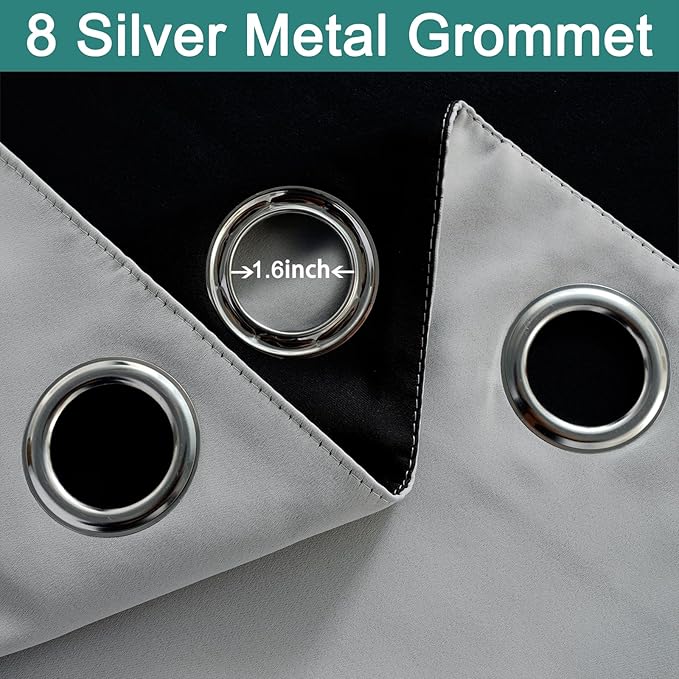 - PACKAGE MADE:2 panels per package. Each Lined Curtain measures 52" wide x 90" long. 8 Silvery Grommets per panel. This silvery grommet (1.6 inch inner diameter) fits many rods. Easy to hang and smooth to slide. The simple design gives people a sense of ease.