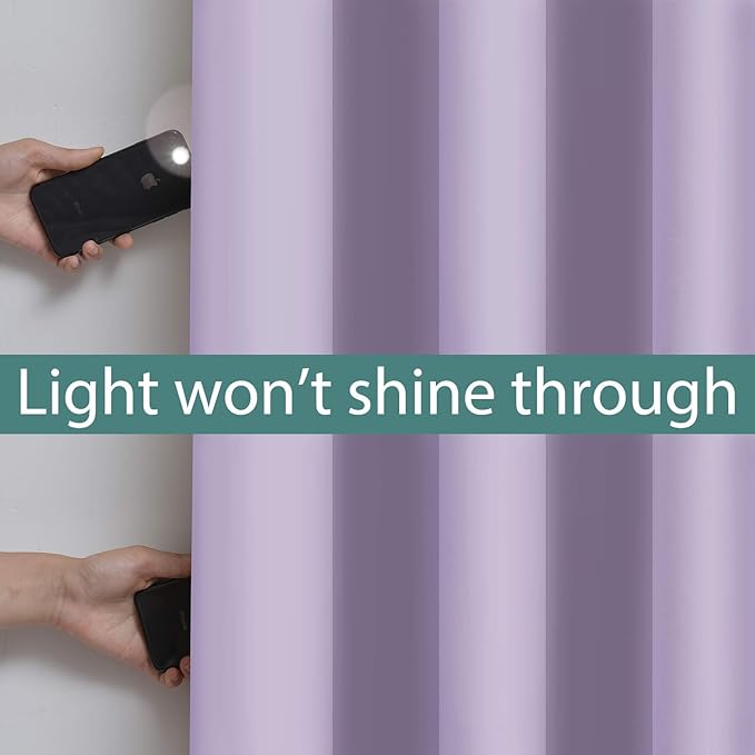 Yakamok 2 Thick Layers 100% Completely Blackout Window Curtains,Thermal Insulated Noise Reducing Drapes for Girl's Bedroom(52Wx90L, Lilac, 2 Panels)