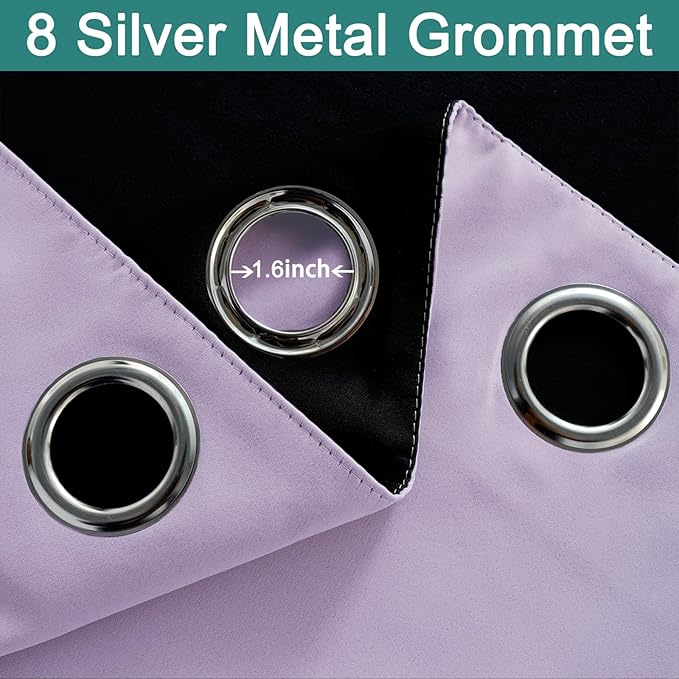 - PACKAGE MADE:2 panels per package. Each Lined Curtain measures 52" wide x 90" long. 8 Silvery Grommets per panel. This silvery grommet (1.6 inch inner diameter) fits many rods. Easy to hang and smooth to slide. The simple design gives people a sense of ease.