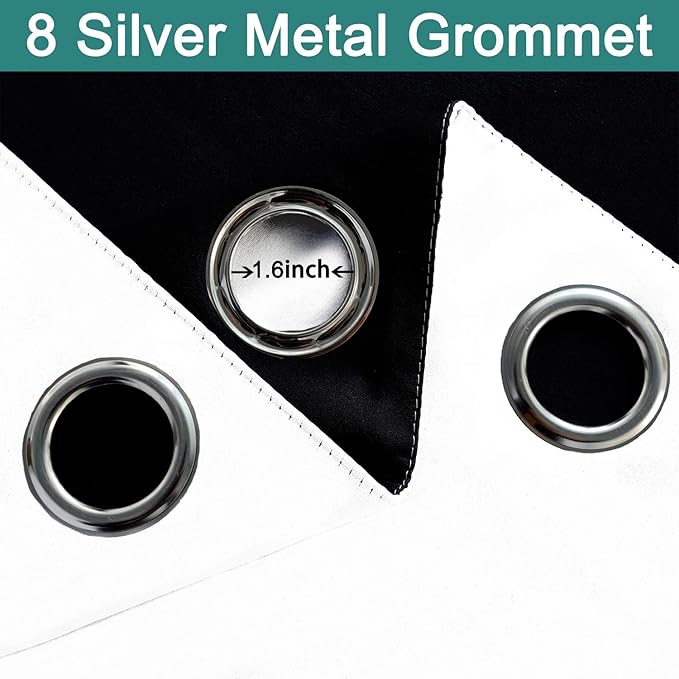 - PACKAGE MADE:2 panels per package. Each Lined Curtain measures 52" wide x 90" long. 8 Silvery Grommets per panel. This silvery grommet (1.6 inch inner diameter) fits many rods. Easy to hang and smooth to slide. The simple design gives people a sense of ease.