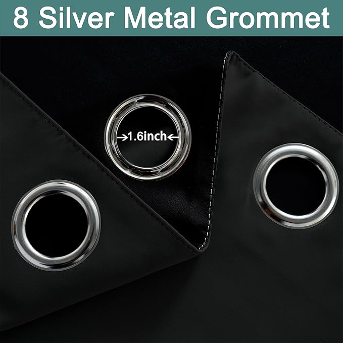 - PACKAGE MADE:2 panels per package. Each Lined Curtain measures 52" wide x 54" long. 8 Silvery Grommets per panel. This silvery grommet (1.6 inch inner diameter) fits many rods. Easy to hang and smooth to slide. The simple design gives people a sense of ease.