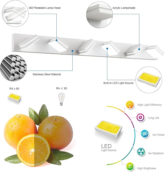 - 【Energy Saving】48W LED Cool White Vanity Light. Although only 48W, but gives off great lighting brightness more than ordinary 200W bulbs. Environmentally friendly and save more electricity.