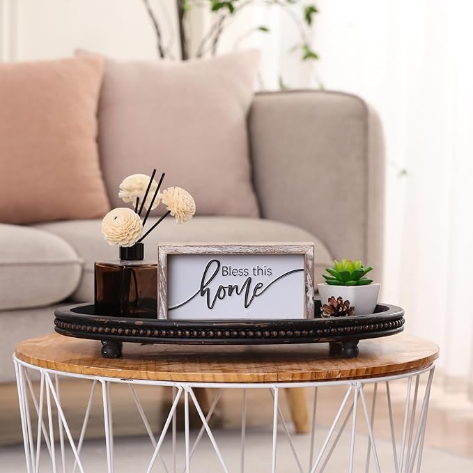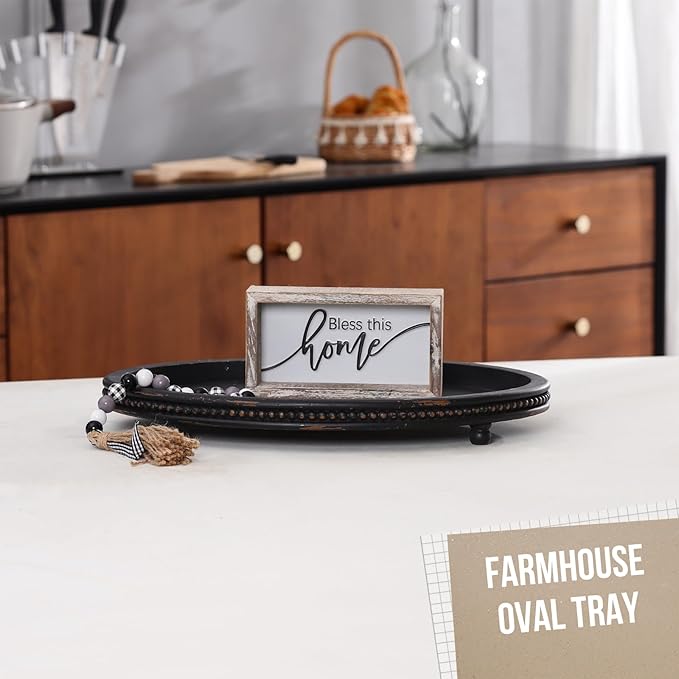 Oval Trays, Wooden Decorative Trays for Coffee Table, Small Beaded Decor in Black