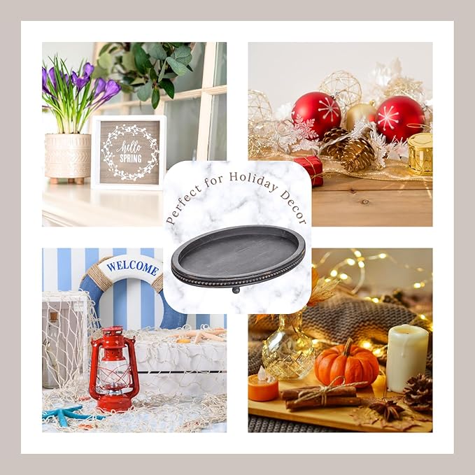 - MULTIPLE OCCASIONS SHABBY CHIC WOODEN DECORATIVE TRAY: Our centerpiece tray delivers a vintage finish to match all decor styles. This counter tray is ideal for coffee tables, shelves, and kitchen counters.