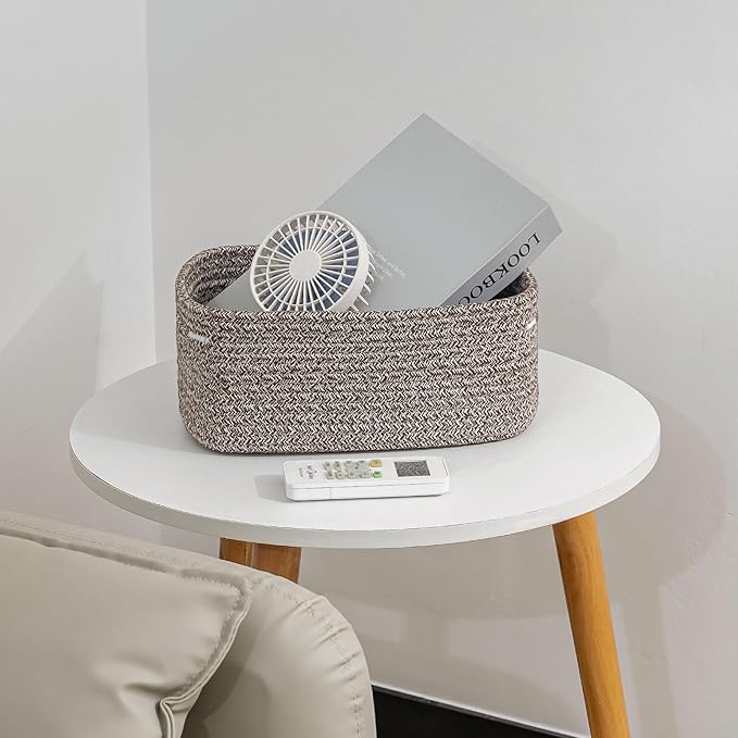 - Classy Natural Cotton Rope Storage Baskets-High quality well made. Very sturdy and a cute modern style. Durable woven rope, Long-lasting, skin-friendly, soft and attractive. You need these adorable baskets to put some supplies in, diaper, jewelry, cosmetics, makeup brushes, tea bags, storing smaller toys, toddler socks, candy