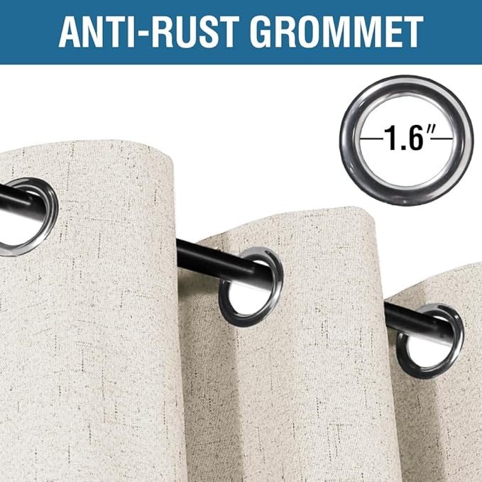 - 100% BLACKOUT: This elegant window panel is passed GLOBAL RECYCLED STANDARD certificate, crafted from rich faux linen textured fabric, inner woven construction features natural blackout effect, definitely block out 100% sun light and prevent harmful UV ray, this opaque piece totally darken your room, reduce the noise and gives you 100% privacy
