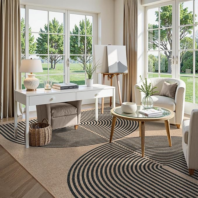 Lahome Modern Rainbow Easy Jute 9x12 Rug, Large Outdoor Patio Rug Farmhouse Indoor Outdoor Living Room Carpet, Contemporary Non Slip Non Shedding Nature Carpet for Dining Room Basement Backyard