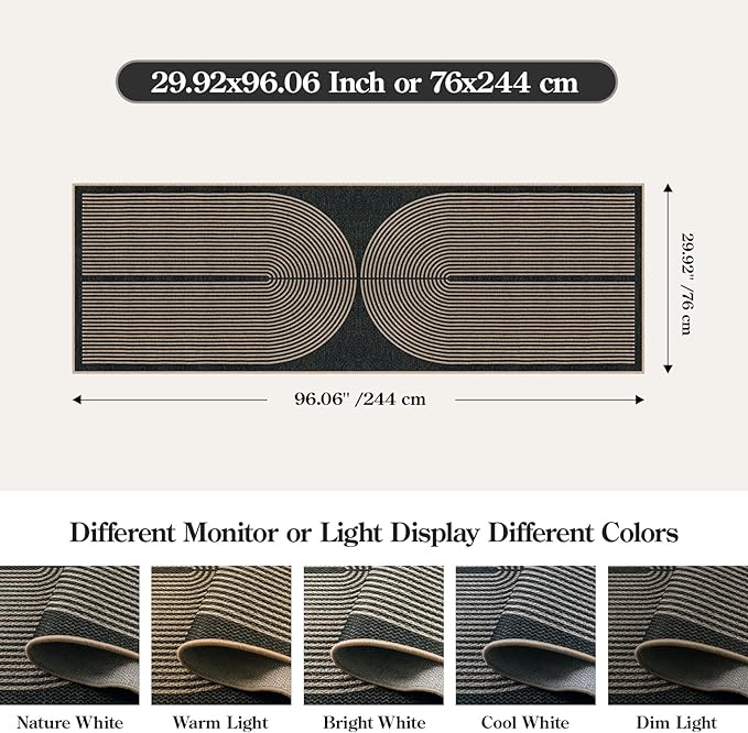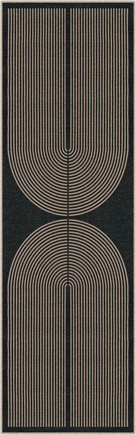 - Modern Rainbow Rug: Its beautiful graphic design combines lines and half circles to create double rainbow textures. Adding contemporary flair to any room, this rug complements a variety of spaces. Printed color and pattern in easy jute, color is charcoal black, not pure black