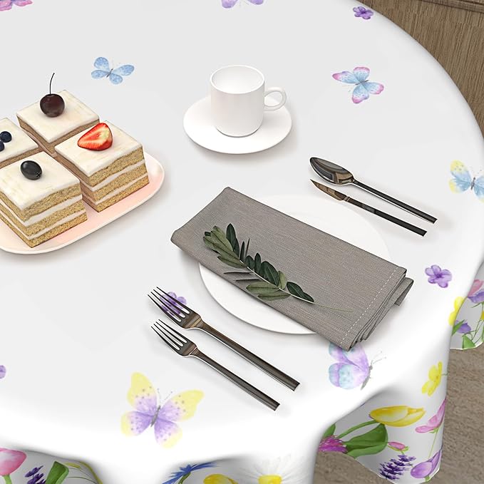 - 【Size & Design】This round tablecloth 60 inch best for table seating 4-6 chairs. This tablecloth suitable size for most restaurants, kitchens and outdoor tables. Spring round tablecloth with colorful and elegant flower and butterfly patterns will create a winning vitality atmosphere for your festive table, feature a casual lightweight drape add too elegant for your table. It is the tablecloth best fit for spring and holiday!