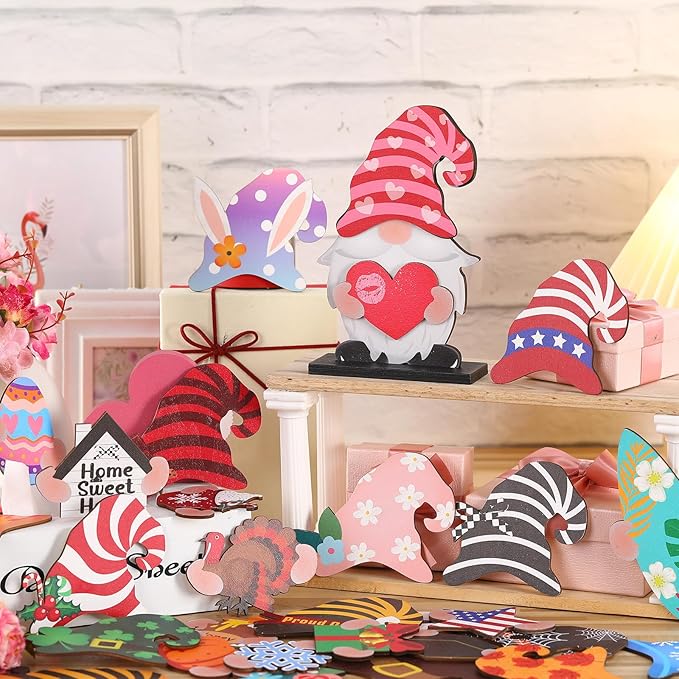 - What You Will Get: you will receive a package with 1 individual wooden gnome decoration, i.e. a base and a small gnome base, they are paired together, as well as different interchangeable shapes that can be changed according to your preference; Each piece measures approximately 18 x 11.5 cm/ 7.1 x 4.5 inches for your use