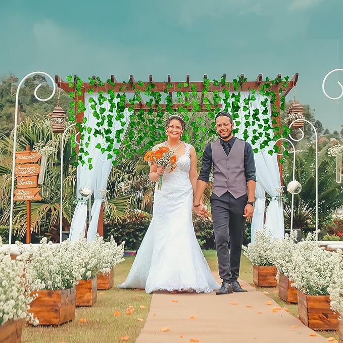 - [WIDELY APPLICATION]: The fake ivy leaves are suitable for wedding,wall,doors,swing,mirrors,bedrooms,gardens greenery backdrop,party,balconies and anywhere as you like to enjoy with these artificial ivy garland, easy to install and disassemble.