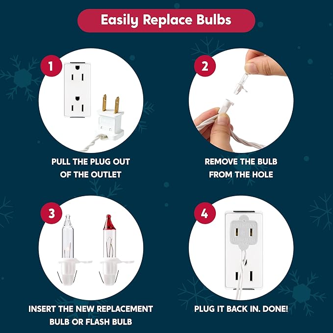 - All-Weather Durability & Independent Bulb Design.Engineered for reliability, these independently wired bulbs ensure if one burns out, the rest stay lit! Designed with premium materials to endure outdoor conditions, and includes spare bulbs and fuses for easy replacement—ideal for long-lasting seasonal and year-round use.