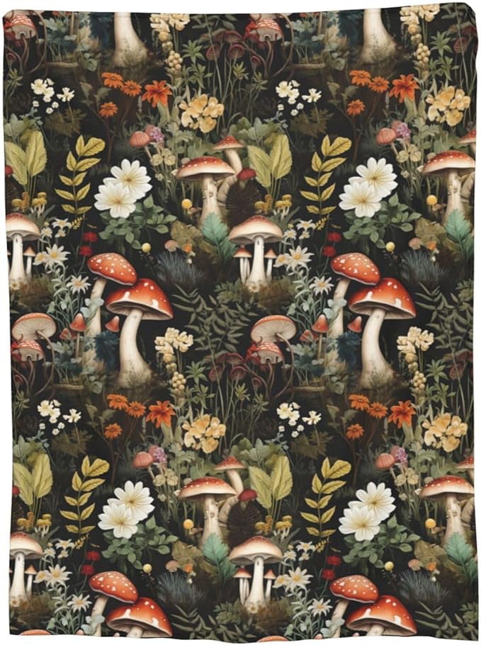 Mushroom Blanket Gifts Floral Weed Flannel Throw Blankets for Home Decor Couch Bed Sofa Soft Fuzzy Lightweight for All Season 80x60 Inches