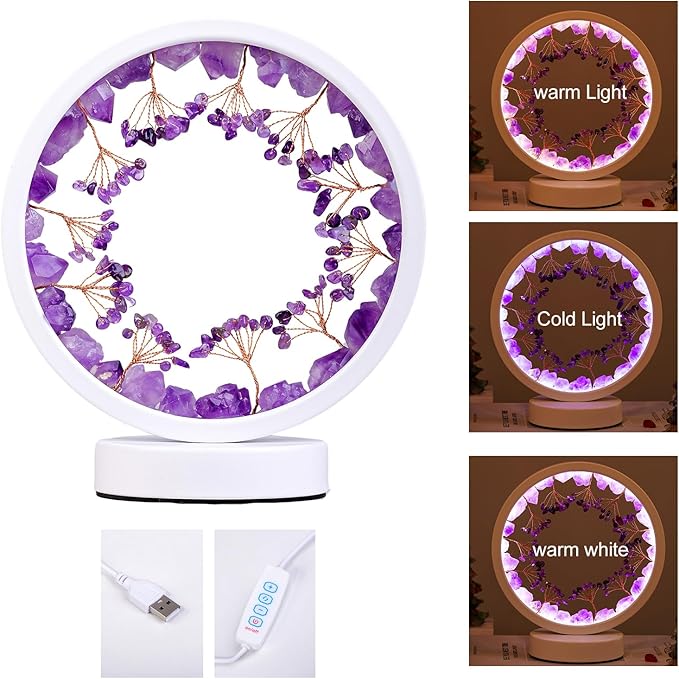 - Stunning Natural Crystals: Our night light is made from genuine natural amethyst tooth crystal, a crystal known for its stunning translucency. The amethyst tooth is a natural tranquilizer that relieves stress and tension, soothes irritability, balances mood swings, and eliminates anger, irritability, fear, and anxiety.