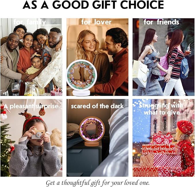 - Versatile Decorative Piece: This small-sized night light can be placed on bedside tables, desks, shelves, or anywhere you desire an enchanting touch of natural beauty combined with functional lighting. It serves as both an illuminating companion during the nighttime hours and an eye-catching decorative accent during the daytime.