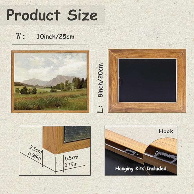 - 【Ready To Hang】Measuring 8x10Inch(20x25cm), this framed canvas art wall decor arrives ready to hang on the wall with hanging kits. (Before nailing the hook onto your wall, please refer to the installation instruction image provided. ) The neutral southwestern decor is the best choice for Housewarming parties or gallery decoration.
