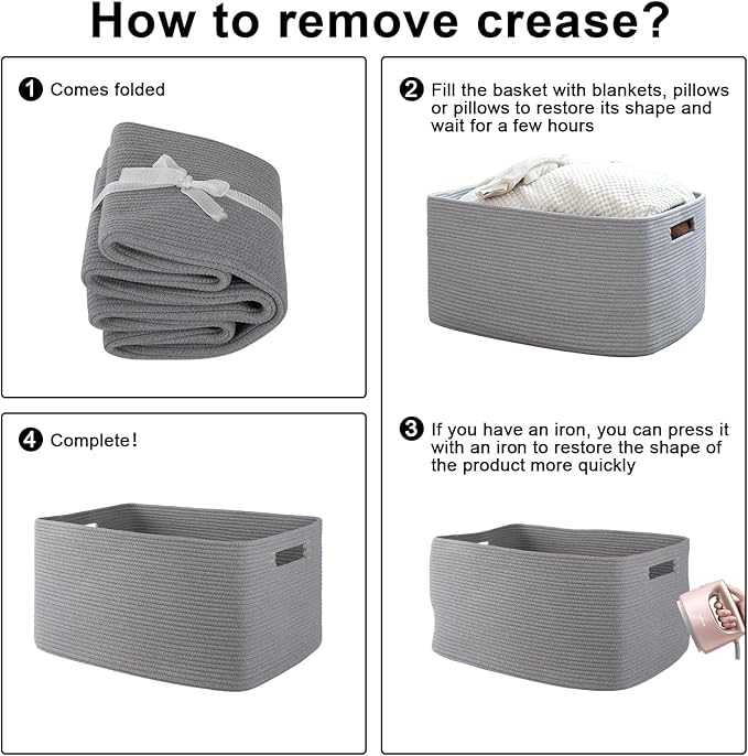 - NOTE: The toy basket is folded, but it will turn back to its elegant shape quickly if you fill it with some pillows or blankets, and iron is great idea to remove the creases