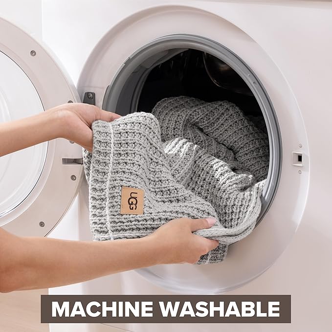 UGG Luna Knit Throw Cotton Chunky Soft Throw Blanket for Couch or Bed Cozy Washable Giftable Lightweight Blanket for Living Room or College Dorm, 50-inch x 70-inch, Stone Grey
