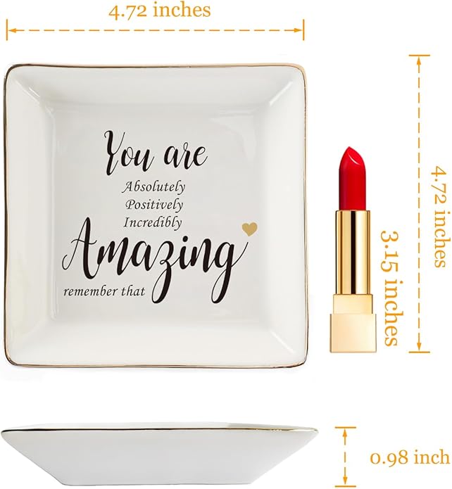 - Christmas Gifts For Women: Encourage reminder trinket tray gifts for best friend reminds that they are amazing, thank you for having them around you and bring happiness to you. This jewelry plate is a positive thank you gifts for Thanksgiving, Christmas, New Year Gifts.