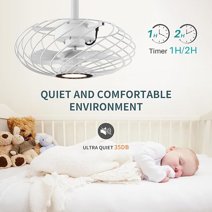 - 【Reversible Blades &Universal for All Seasons】 The caged ceiling fan with light has forward and reverse rotating blade mode, which can blow downward when rotating forward, suitable for heat dissipation and cooling, and can circulate air upward when rotating reverse, suitable for indoor air circulation, you can choose different modes according to your needs