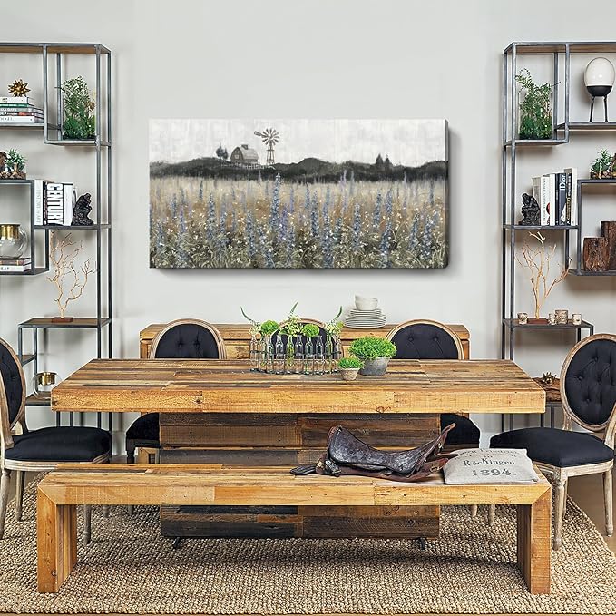 - Large Wall Art for Living Room:This farmhouse wall art features a scene of countryside lavender flower field,meadow,barn and windmill.The vintage landscape bedroom wall art captures the beauty and tranquility of nature,bringing a sense of traditional flair to your interior.A must-have addition to any room,creating a serene and cozy atmosphere