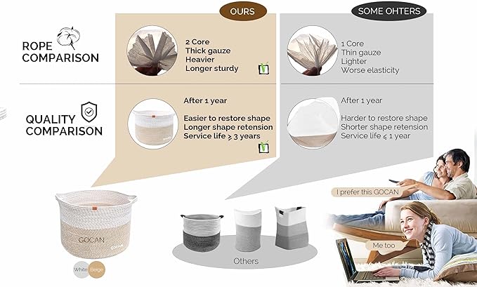 - ✅Natural & Organic Material: Made of 100% natural cotton and made by hand, this woven rope basket is safe and healthy for humans and pets, without any chemicals. It can be used as a laundry hamper, shoe storage, etc. Not only sturdy but also durable, you will love it.