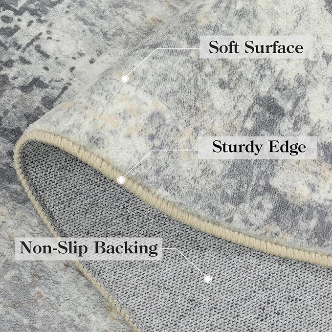 Lahome Modern Abstract 9x12 Area Rugs for Living Room, Washable Living Room Rug for Bedroom Low Pile Non Slip, Grey Soft Indoor Accent Carpet for Dining Room Table Apartment