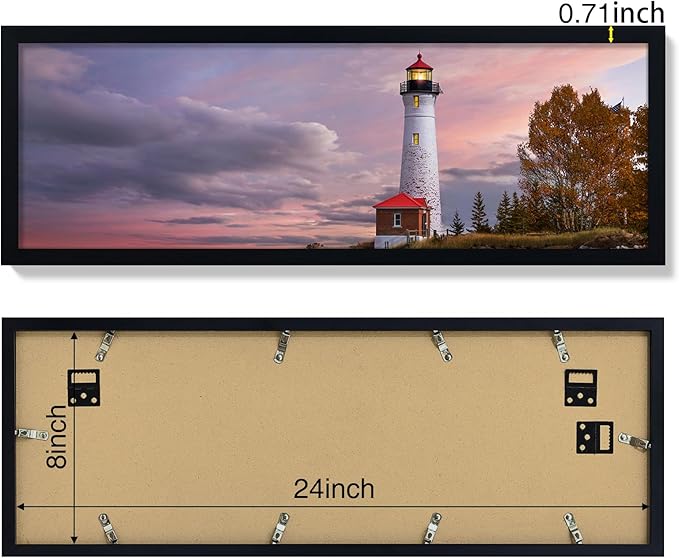 Vittanly 8x24 Picture Frame with Plexiglass - Large Black Poster Frame for Wall Display - Durable PVC Design - 1 Pack