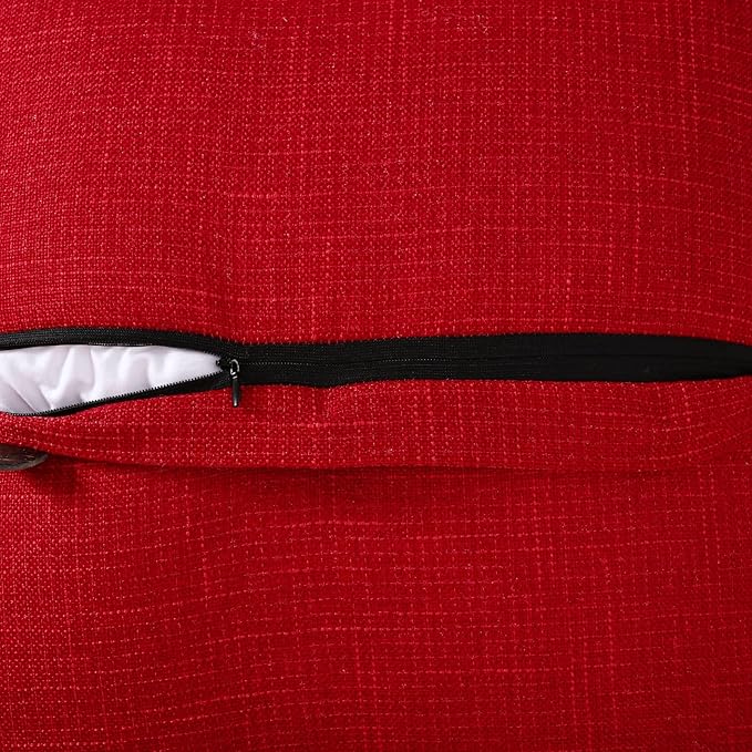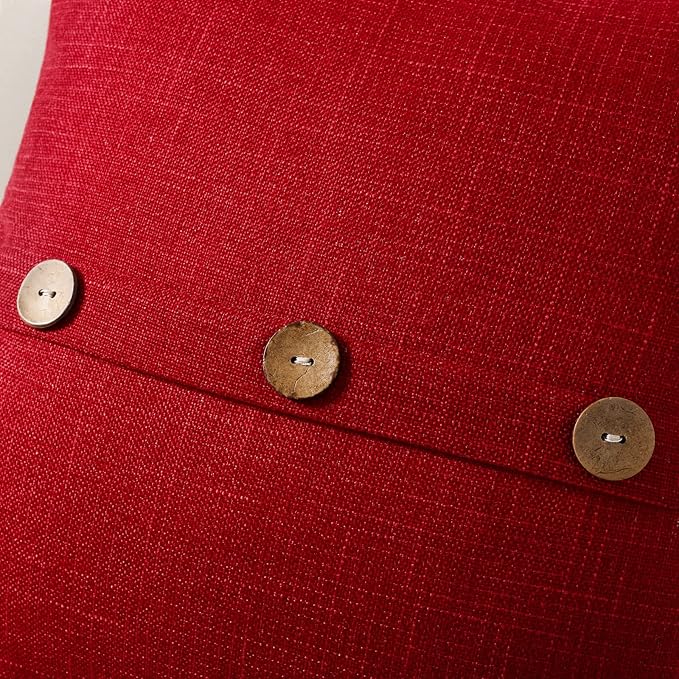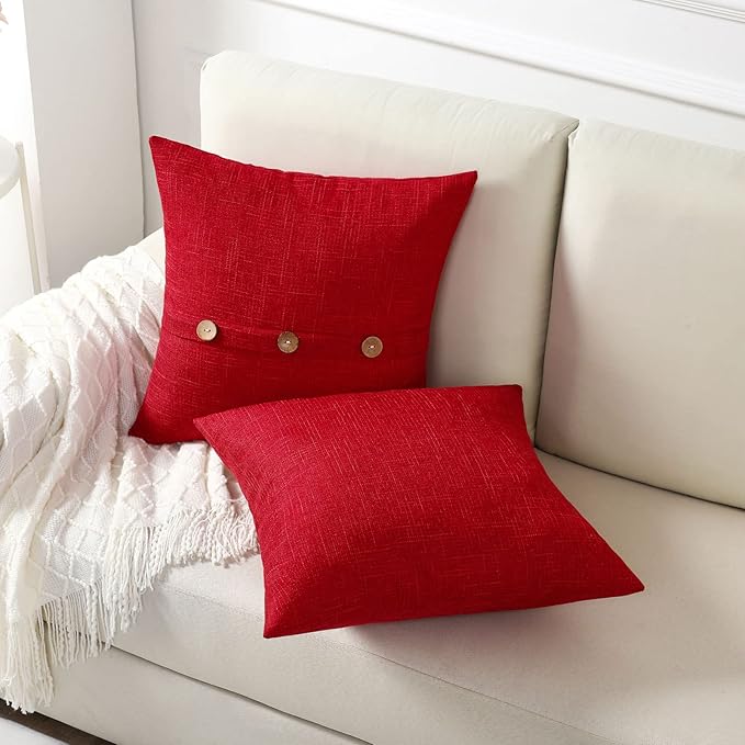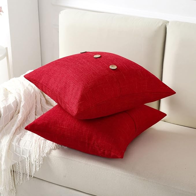 HAUSSY Red Linen Decorative Throw Pillow Covers 22x22 Inch Set of 2,Square Cushion Case with 3 Vintage Buttons,Modern Farmhouse Home Decor for Couch,Bed