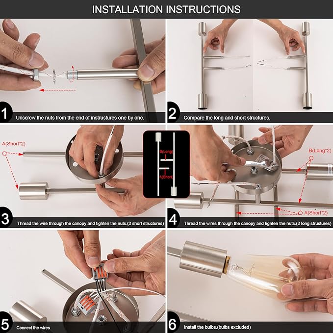 - ๐กใ4-light Sputnik Chandeliers Designใ Semi flush mount ceiling light has elegant and Industrial look, creating a comfortable and modern ambiance to your house.