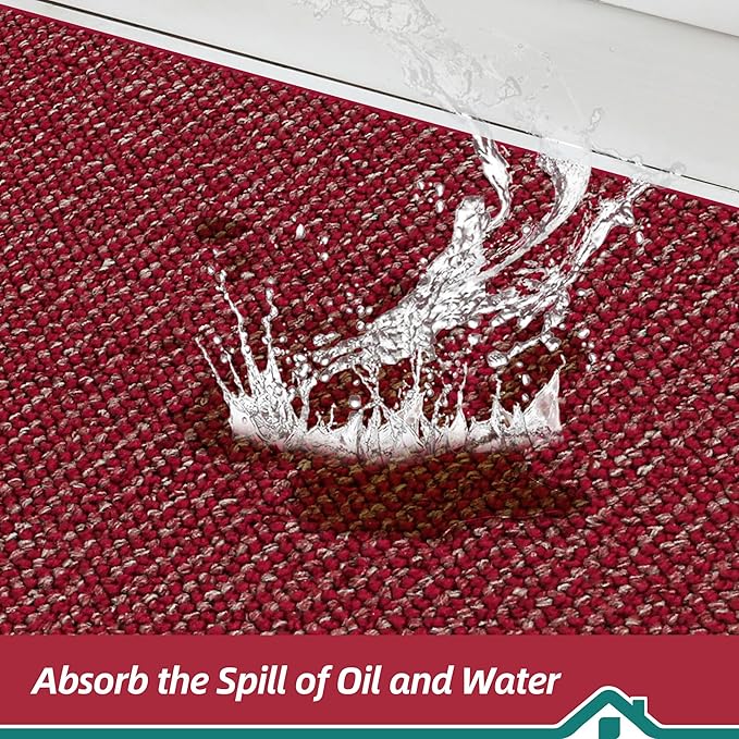 - Extra Absorbent & Protection: Our kitchen rugs and mats are made of premium Polypropylene fibers and extremely dense yarns, which can effectively absorb spilled oil and water, protect your floor from oil, moisture, sauces or food particles, keeping your kitchen clean and tidy. The soft surface of kitchen rugs can also protect the floor from your beloved tableware breaking or damaging the floor