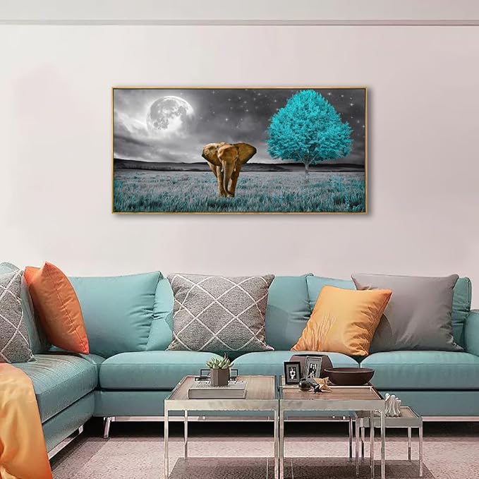 Canvas Wall Art Moon and Tree Picture Prints Paintings for Living Room Home Decor Animal Elephant Landscape Framed Wall Art,20 * 40inch