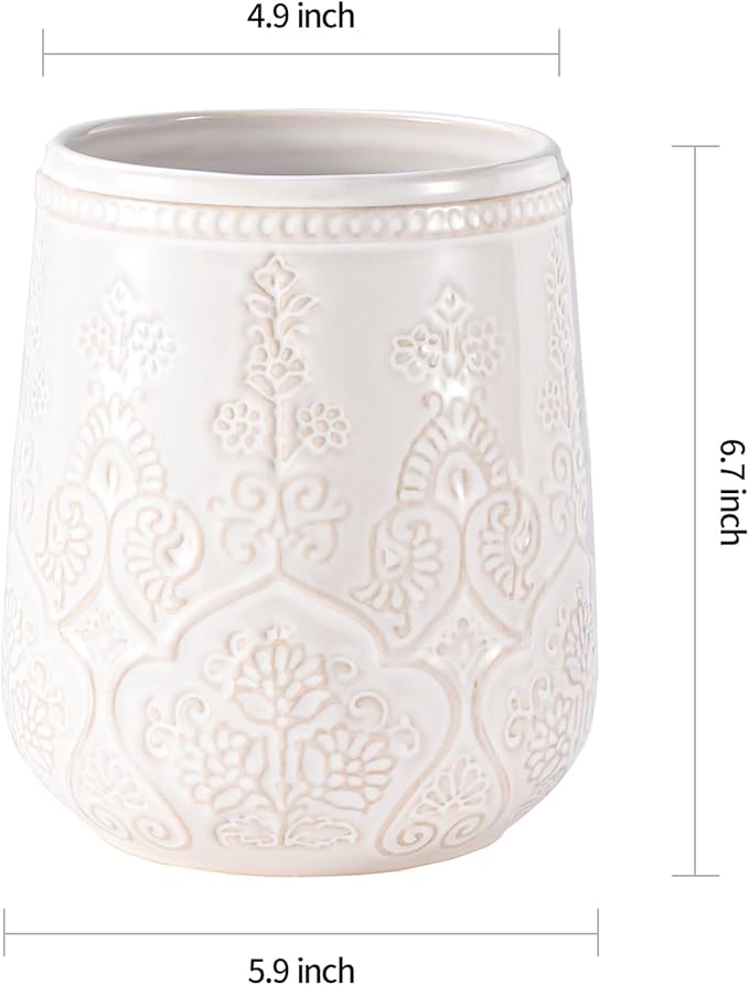 Utensil Holder, Large Kitchen Utensil Holder for Counter, 6.7”Ceramic Cooking Utensils Holder, Kitchen Decor for Counter (White)