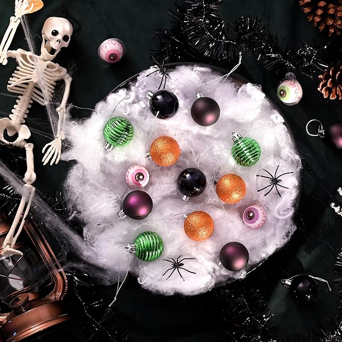 - 【Exquisite Craftsmanship】Our halloween tree ornaments include 3 special finishes such as shiny, matte, and glitter. Additionally, the set includes one ribbed molded ball. The multi-finish and novelty shape ornaments meet all your favorite tree ornament needs, and the molding seam is almost invisible, making them look exquisite