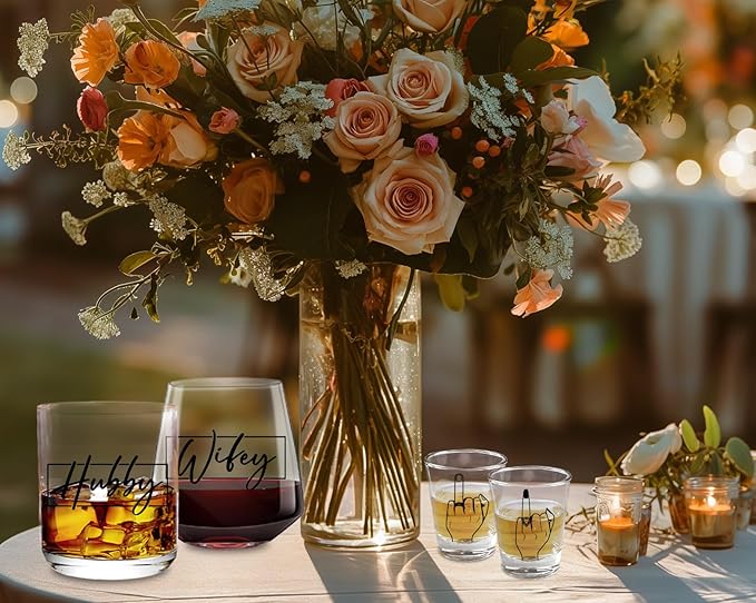 - LOVE INCARNATED: Celebrate love and laughter with our adorable wifey & hubby stemless wine whiskey wedding glass! Engraved with the words “wifey” and “hubby”, beautifully crafted pair of glasses makes a great wedding gifts for couples 2024, engagement gifts, bridal shower gifts, mr and mrs gifts, bride and groom gifts for couples, making every sip of wine romantic.