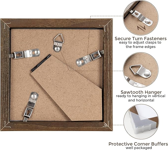 - WELL PACKAGED - Each 4"x4" square frame is shrink-wrapped and secured with corner protectors, all of our 4 x 4 wood frames are packaged in custom-made corrugated boxes so your frames arrive in pristine condition.