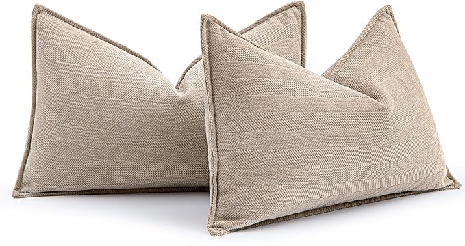 MIULEE Pack of 2 Beige Decorative Lumbar Pillow Covers 12x20 Inch Soft Chenille Luxurious Couch Throw Pillows Farmhouse Cushion Covers with Elegant Design for Sofa Bedroom Living Room Home Decor