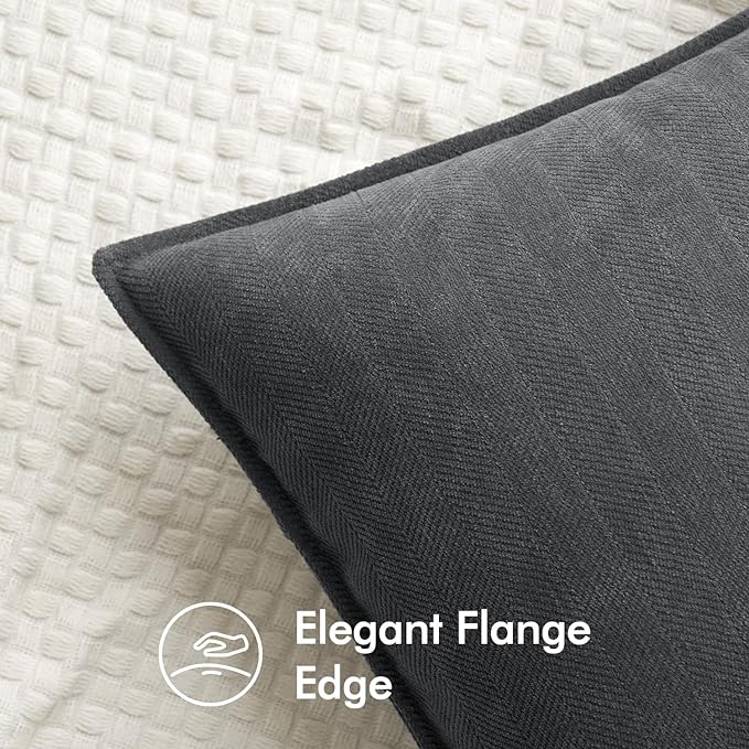 MIULEE Pack of 2 Dark Grey Decorative Lumbar Pillow Covers 12x20 Inch Soft Chenille Luxurious Couch Throw Pillows Farmhouse Cushion Covers with Elegant Design for Sofa Bedroom Living Room Home Decor