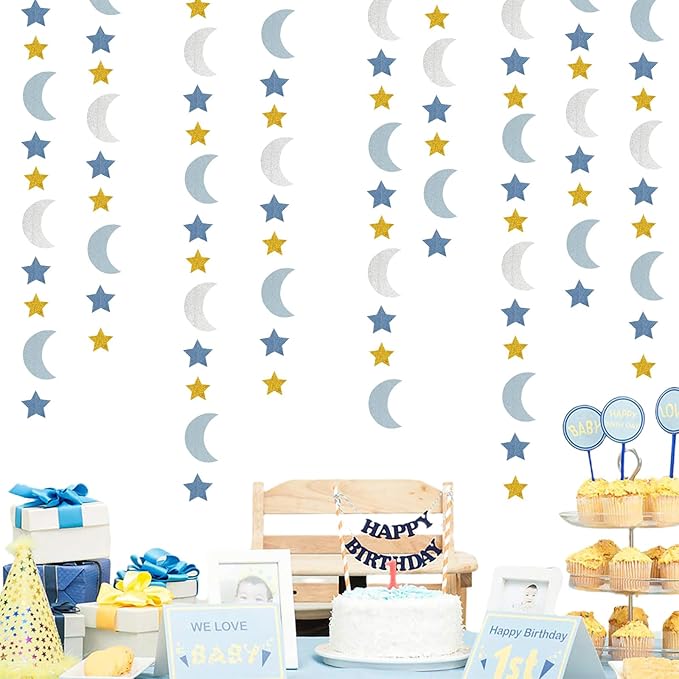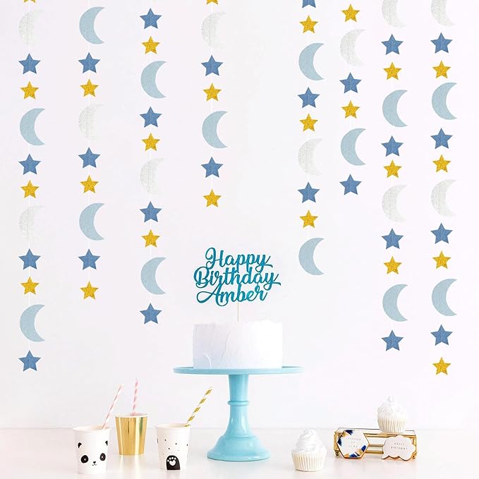 - 【Using Occasion】They are perfect for eid decoration,ramadan mubarak decor,bridal shower,weddings,anniversaries,birthday,twinkle twinkle little star decorations,eid mubarak decor,blue gold silver party decoration.