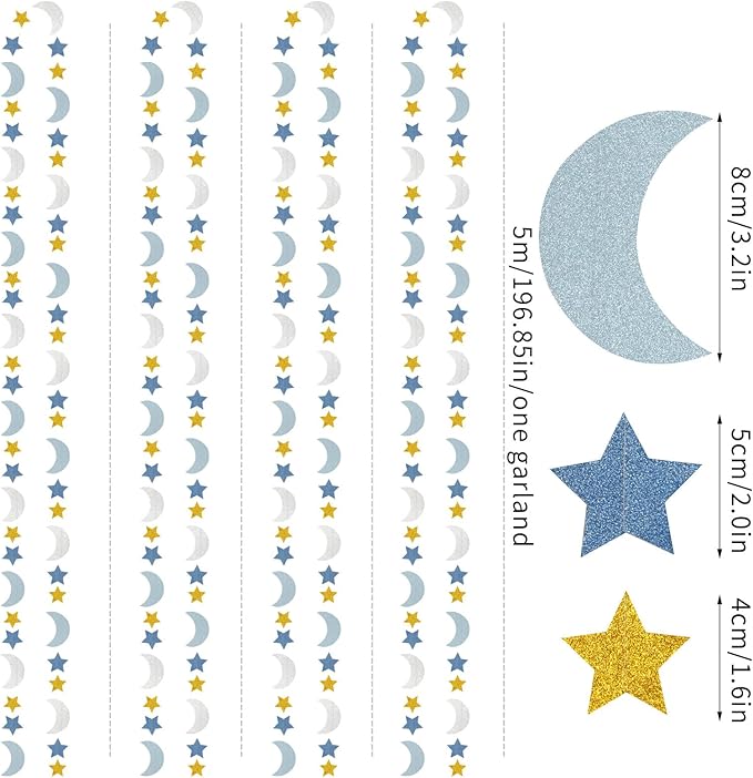 - 【Material】The material is eco-friendly double side blue gold silver.You can cut to any length you want if you need shorter length.The moon and star are cut very neatly.